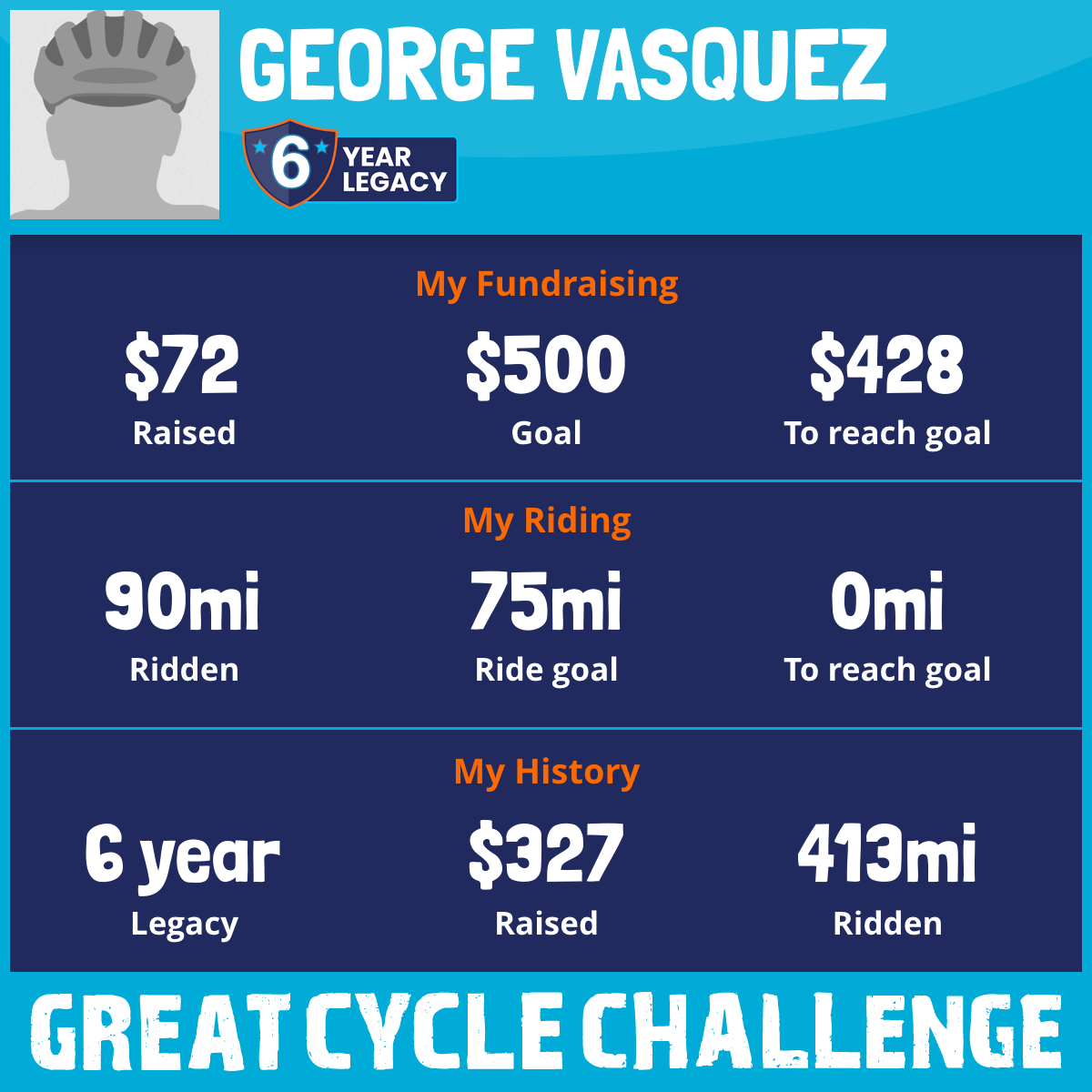 I am riding 75 mi in memory of Nellie Vasquez & Paula Gonzales. Please sponsor me and support my challenge to fight kids' cancer and save little lives.