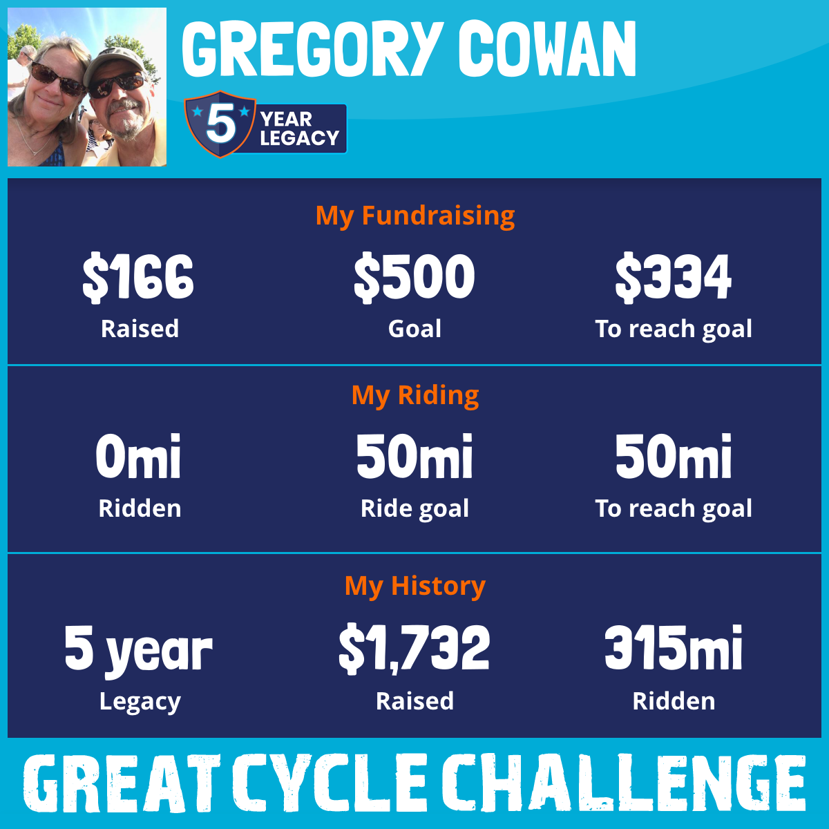 This September, I am taking part in the Great Cycle Challenge to fight kids' cancer for the 5th year straight. I won't be able to ride much this year because I am still recovering from my liver transplant earlier this year, but that does not make this any less important.