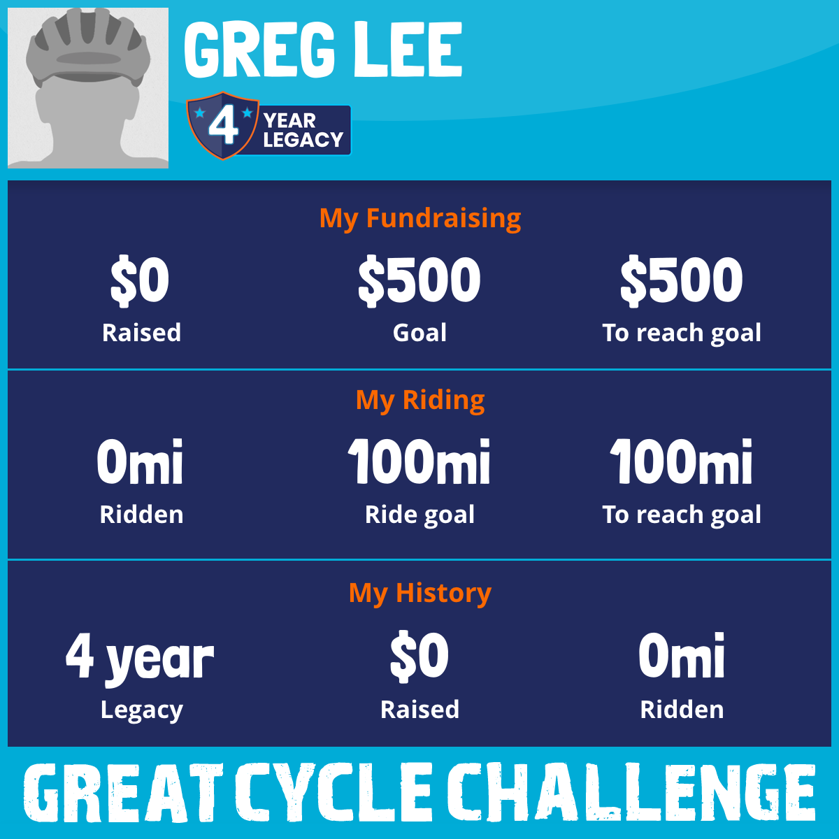 I've raised $0 My goal is $500 Donate Now