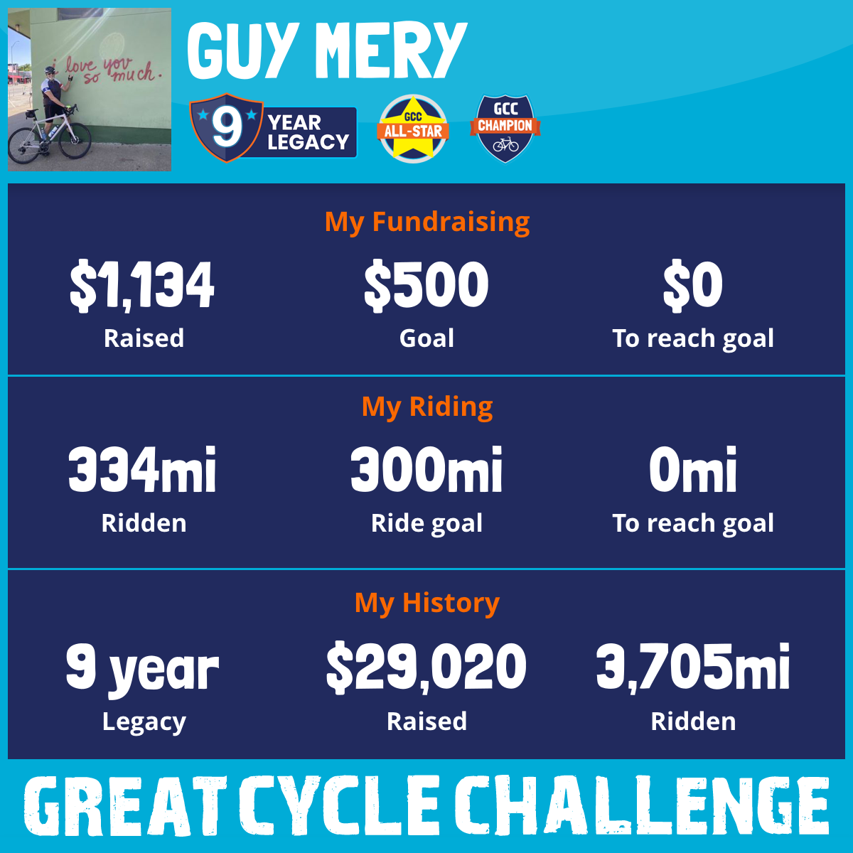 334 mi Ridden$1,134 Raised2025