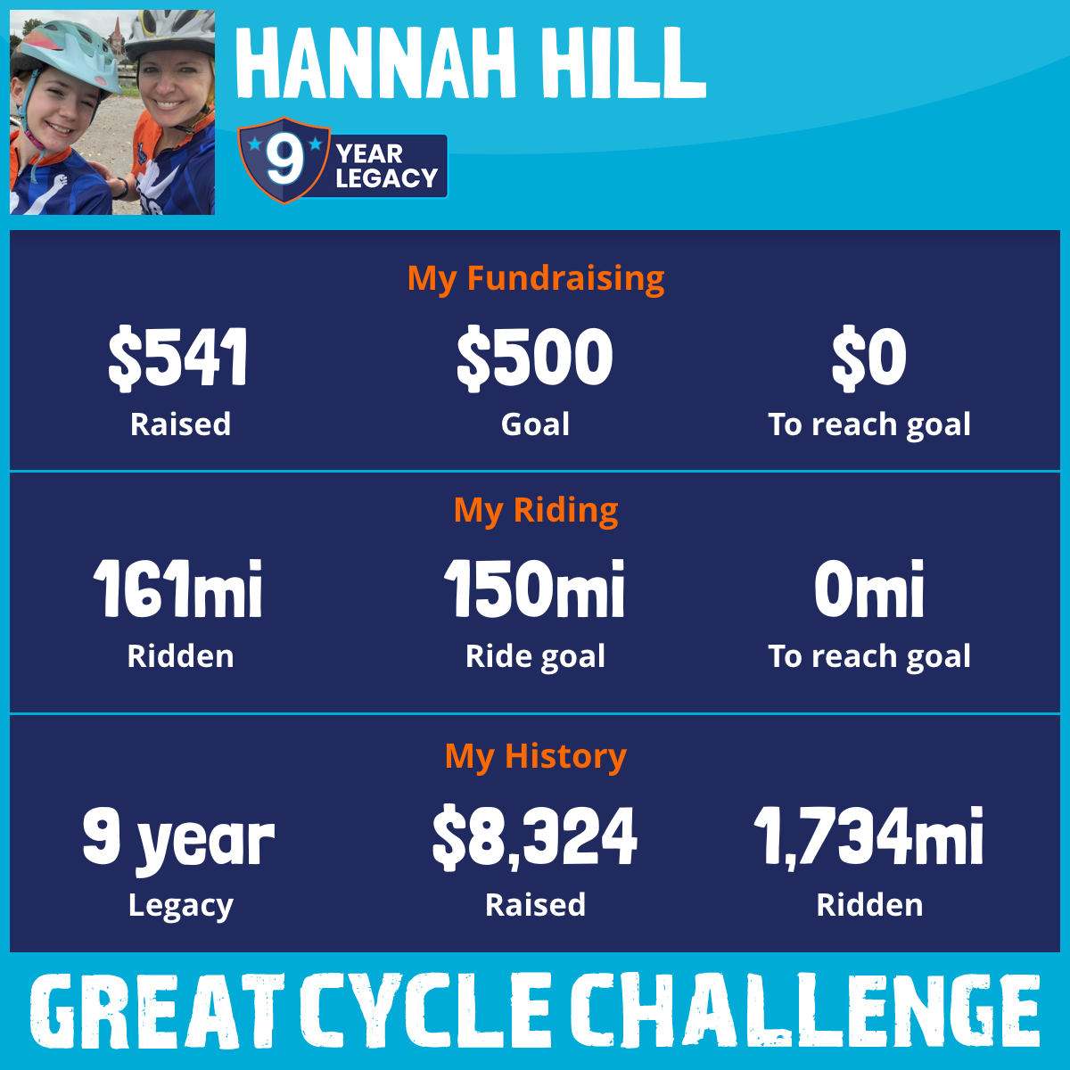 This September (Childhood Cancer Awareness Month), I am once again taking part in the Great Cycle Challenge to help fight kids' cancer. I will ride in honor and in memory of my sister, McKensie, who lost her battle against DIPG in 2007. This year, my daughter Audrey will be joining me for the challenge.