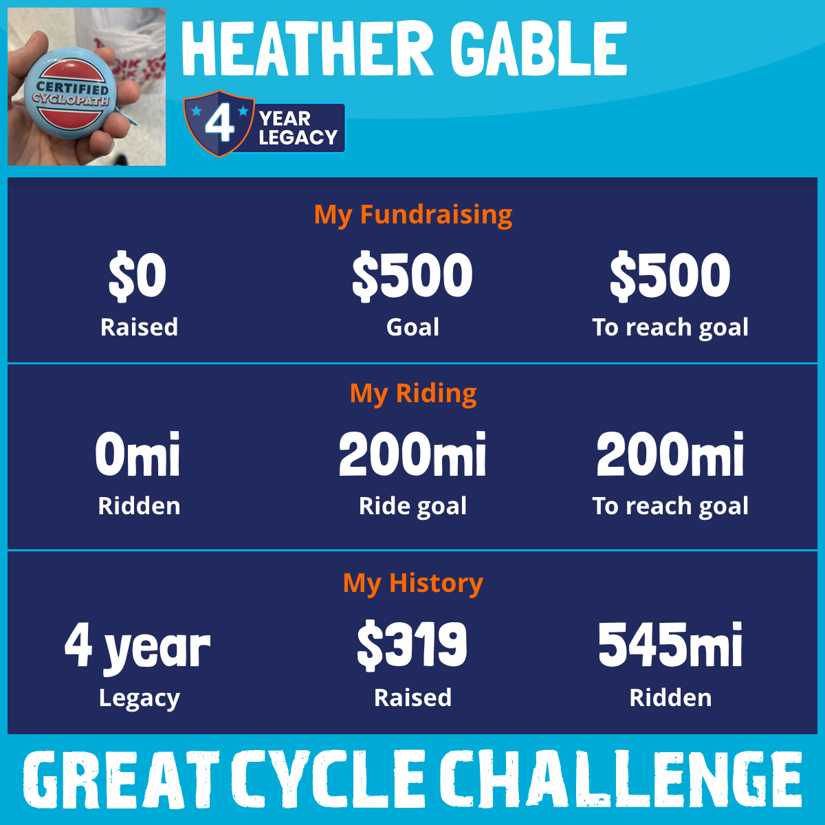 I am riding 200 mi in memory of my grandfather, Charlie Gable. Please sponsor me and support my challenge to fight kids' cancer and save little lives.