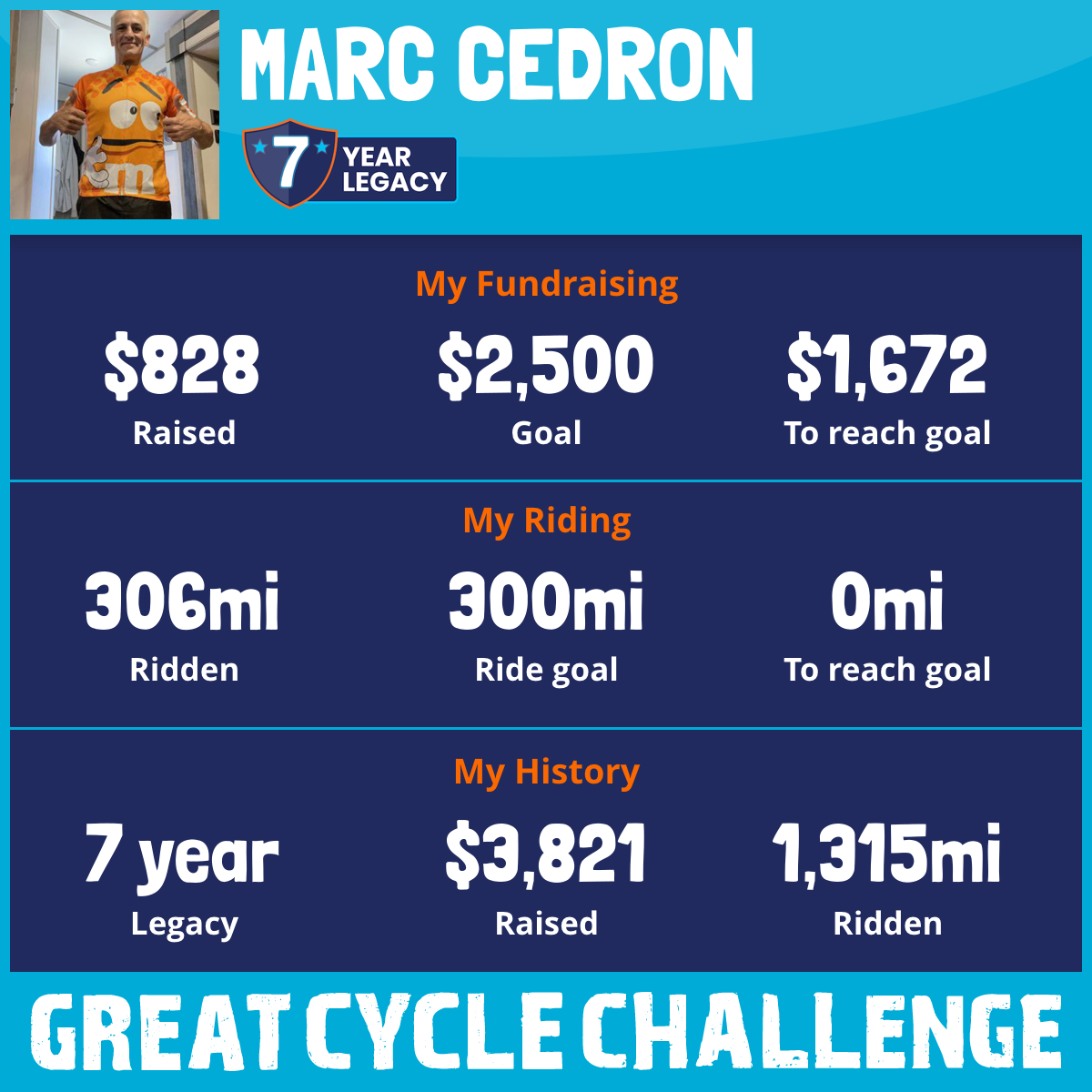 I am riding 300 mi in memory of EVERYONE THAT HAS BEEN TOUCHED CANCER. Please sponsor me and support my challenge to fight kids' cancer and save little lives.