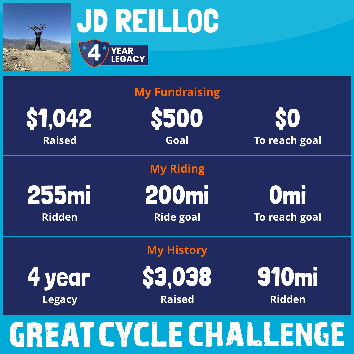 255 mi Ridden$1,042 Raised2025