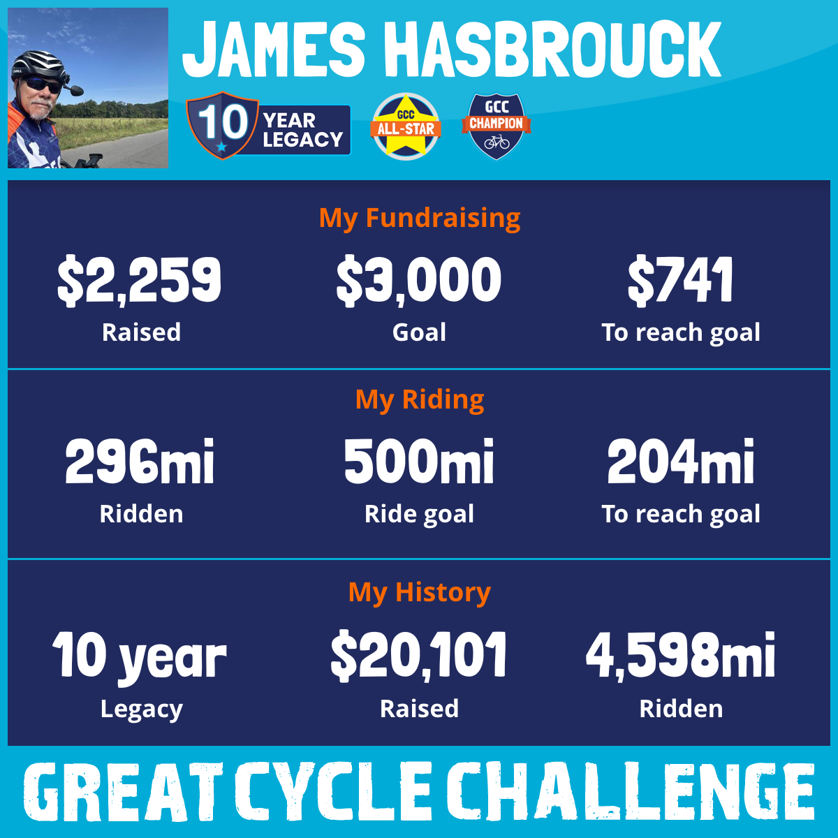 Five of my family members have battled cancer. My sister Barbara, Cousin Sharon and Sister-in-law Maggie, Cousin Larry, Niece Mandy and my good friend Leroy left us just this year... Mandy came through the other side...Barb, Sharon Larry ,Maggie and Leroy were fighters. Let's see the cure in our lifetimes; Let's start by getting these kids free of this godawful disease.... Ride On.