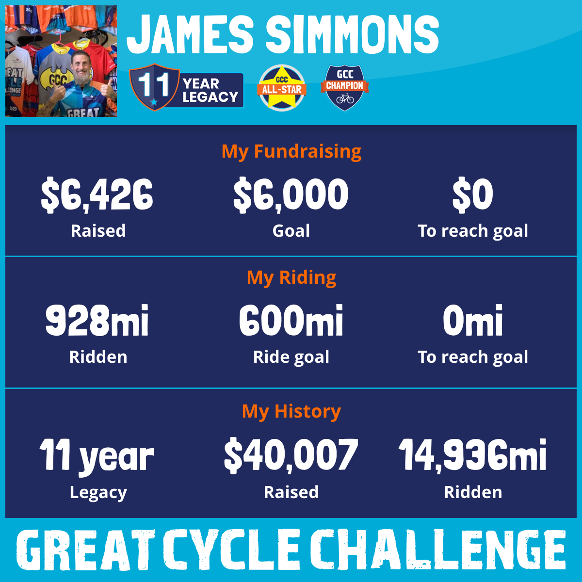 This year, I ride for Mason. Mason was just 11 years old when he passed away from sarcoma in June 2025—one day before his 12th birthday. He was full of life: witty, brave, and endlessly kind. He loved WWE, video games, swimming, and making everyone laugh with his clever one-liners. Even after years of treatment, Mason never lost his spark. But Mason was more than a cancer patient. He was a beloved son, nephew, and friend—a bright light in the lives of everyone who knew him. This year, I ride for Mason and for those who loved him. For his courage. For his smile. And for every child still fighting.