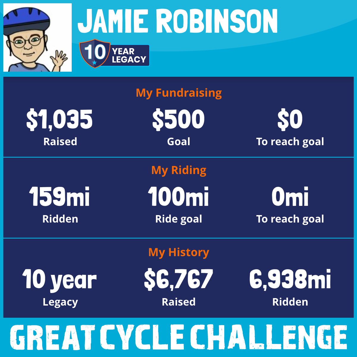 This September, I am taking part in the Great Cycle Challenge to fight kids' cancer for the 10th year. While my distance is certainly not what it used to be, I'm glad to be able to take an active part. Please consider a donation, no matter how small (or large) especially this year with the massive funding cuts.