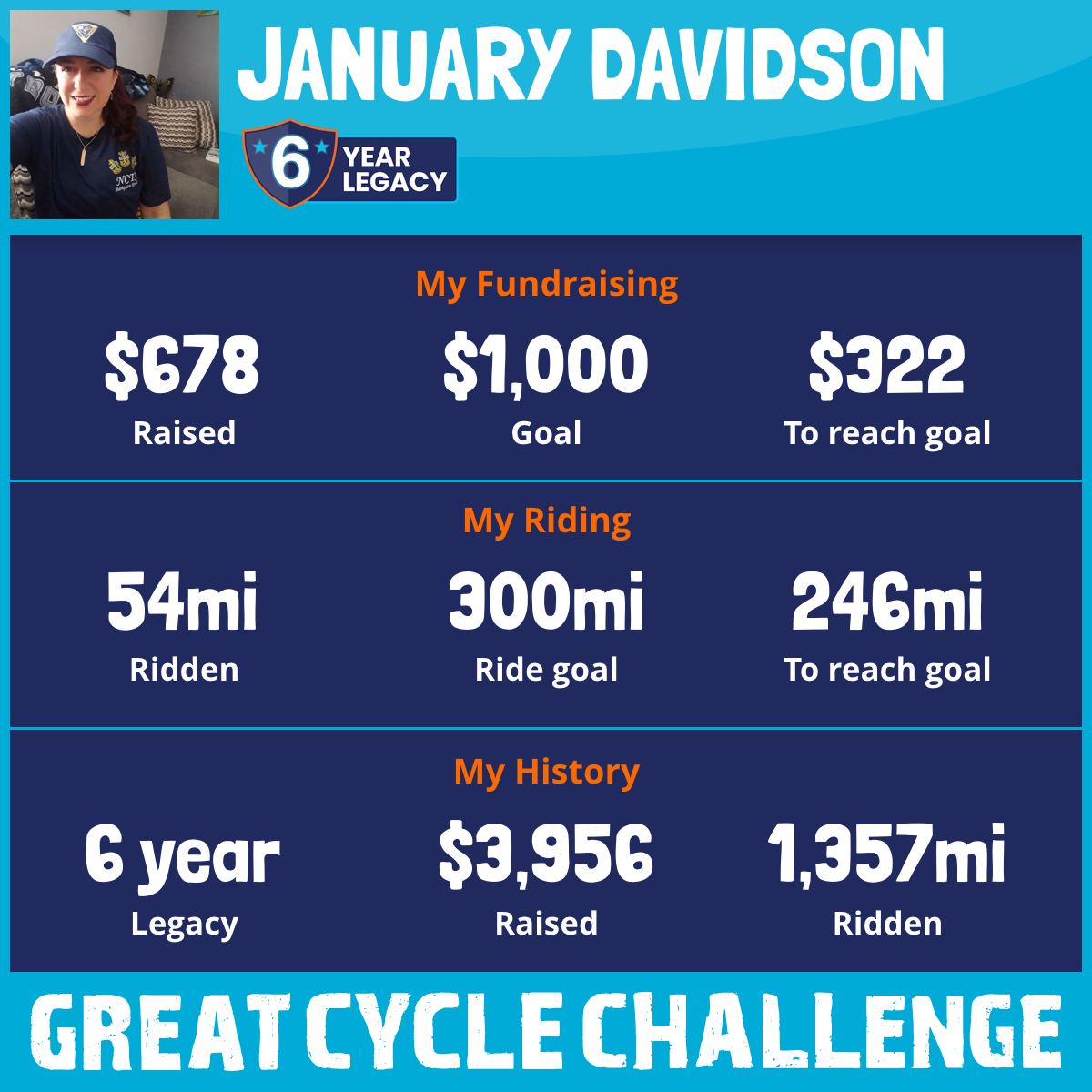80 mi Ridden$678 Raised2025