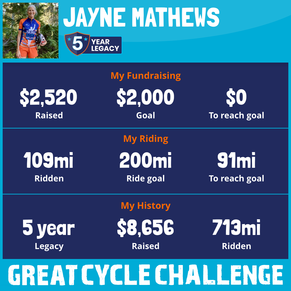 2025 marks my FIFTH year riding in the Great Cycle Challenge to fight kids' cancer—and I’m as passionate as ever about this mission!