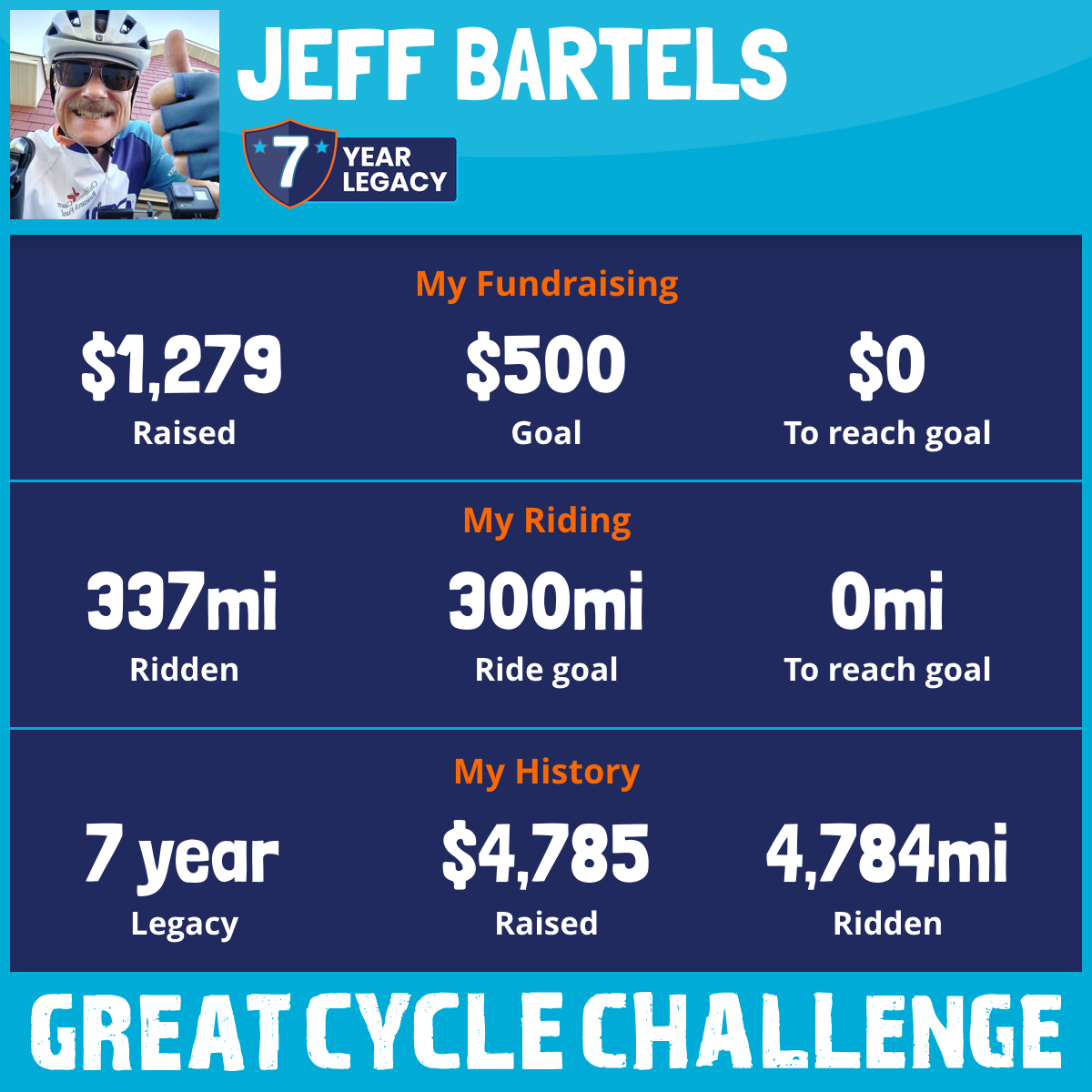 I am riding 300 mi in memory of my brother-in-law, Russ McCormick. Please sponsor me and support my challenge to fight kids' cancer and save little lives.