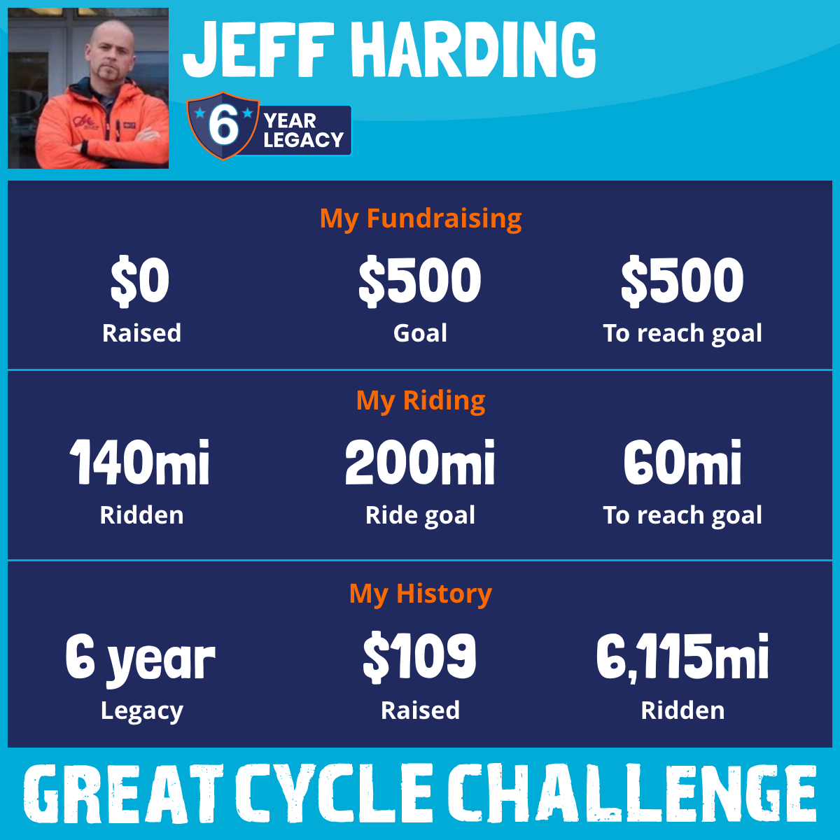 I am riding 200 mi in memory of my dad, Richard Harding. Please sponsor me and support my challenge to fight kids' cancer and save little lives.