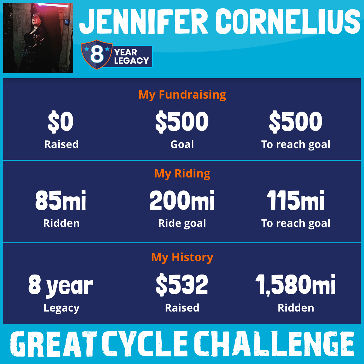 This September, I am taking part in the Great Cycle Challenge to fight kids' cancer! I will be logging my miles throughout September whenever I ride. To help keep motivated, I ask you to take a moment to possibly donate whatever you can offer to give towards my goal to fight childhood cancers. If you cannot donate, then PLEASE share my effort across your social media and spread the word to help me reach my goal!