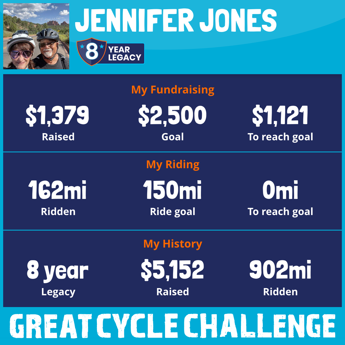 I participate in the Great Cycle Challenge because cancer has touched the lives of people I love. Seeing firsthand how important research, treatment, and care are—not just for patients, but for their families too—has shown me why this cause matters so much. Every mile I ride is my way of helping to fund the research that gives kids and families more hope, more options, and more time together. This challenge is personal to me, and I’m grateful for the chance to ride, raise awareness, and support the fight against childhood cancer.