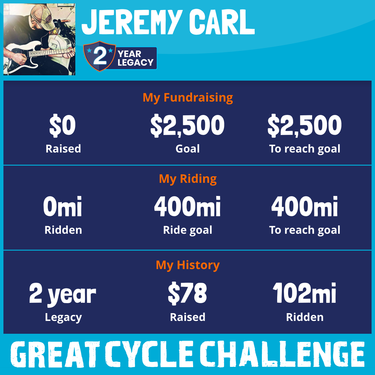 I've raised $0 My goal is $2,500 Donate Now