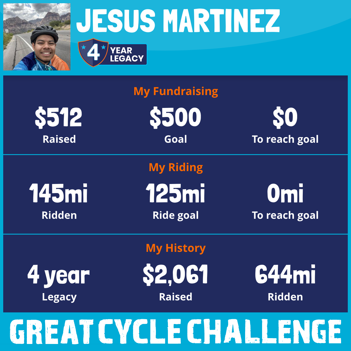 145 mi Ridden$512 Raised2025