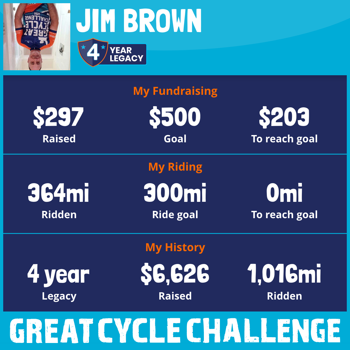 187 mi Ridden$1,801 Raised2023