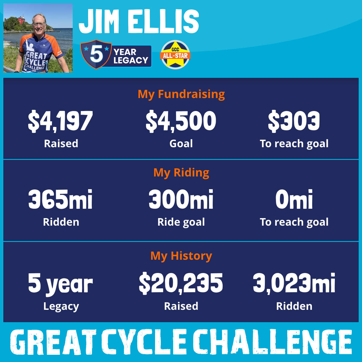 365 mi Ridden$4,510 Raised2025