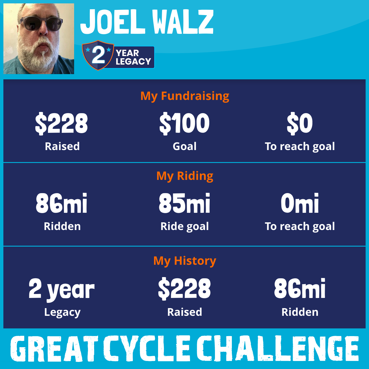 I am riding 85 mi in memory of Grampa Mosher. Please sponsor me and support my challenge to fight kids' cancer and save little lives.