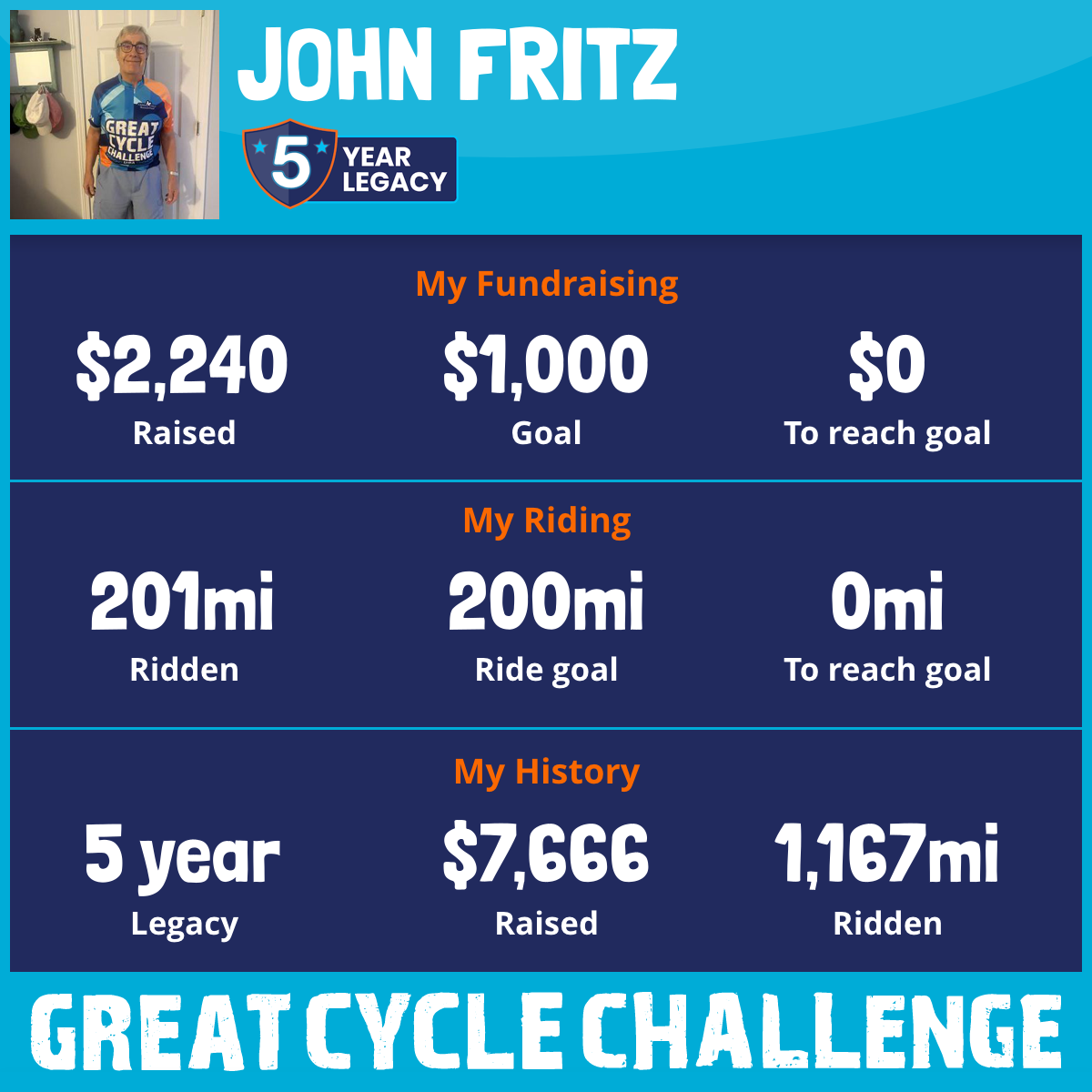 301 mi Ridden$2,040 Raised2022