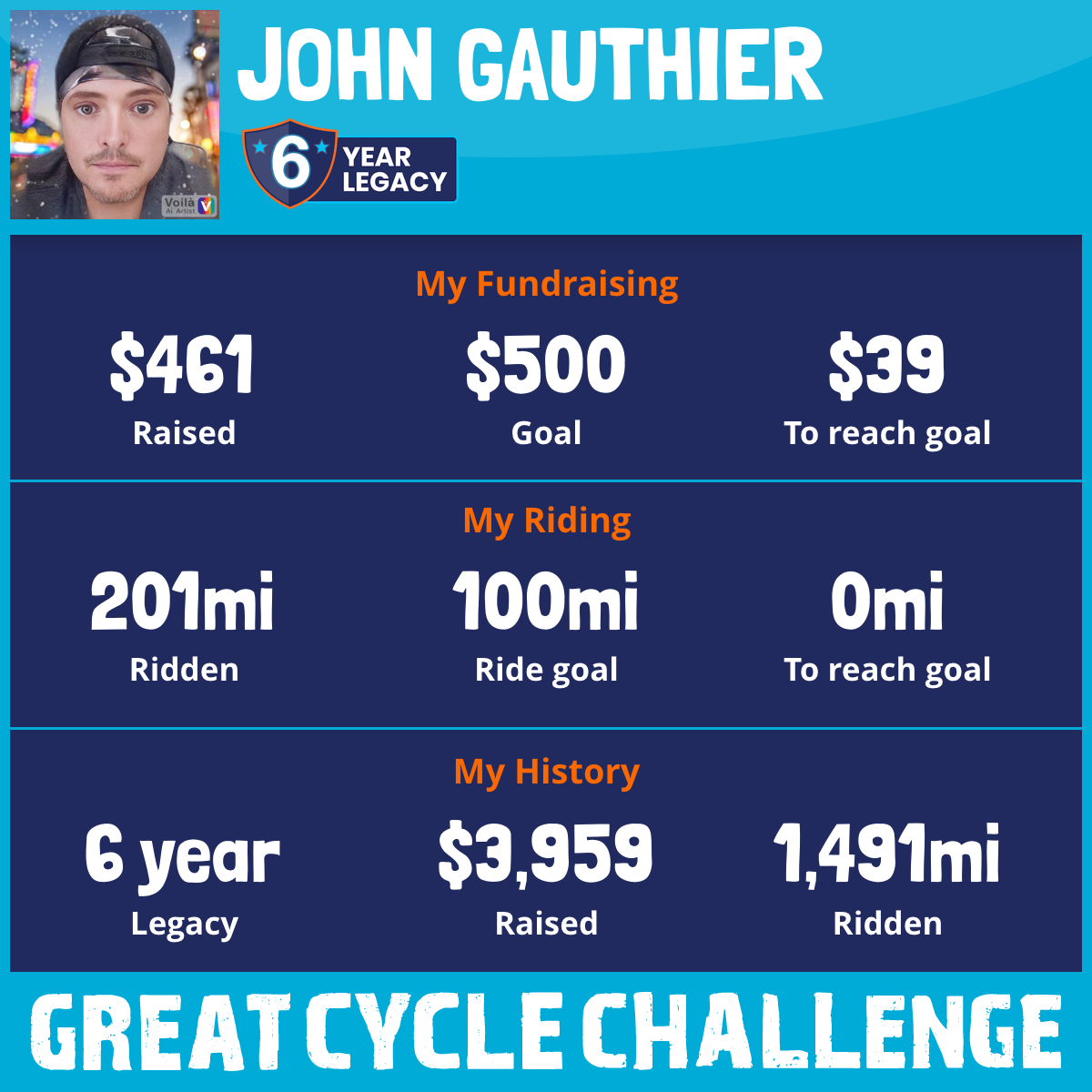 201 mi Ridden$461 Raised2025