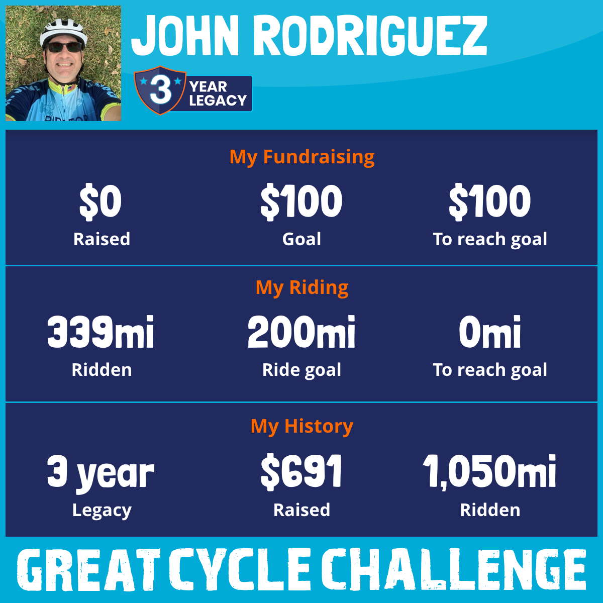 I am riding 200 mi for John Renard. Please sponsor me and support my challenge to fight kids' cancer and save little lives.
