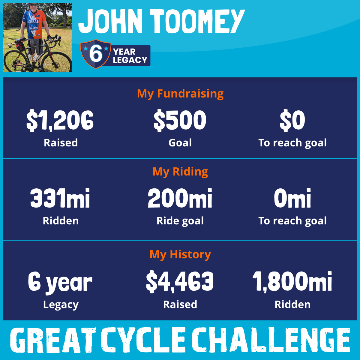 331 mi Ridden$1,206 Raised2025