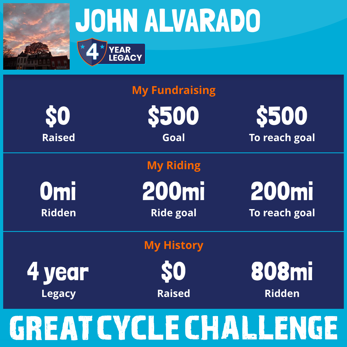 I am riding 200 mi for Man kind. Please sponsor me and support my challenge to fight kids' cancer and save little lives.