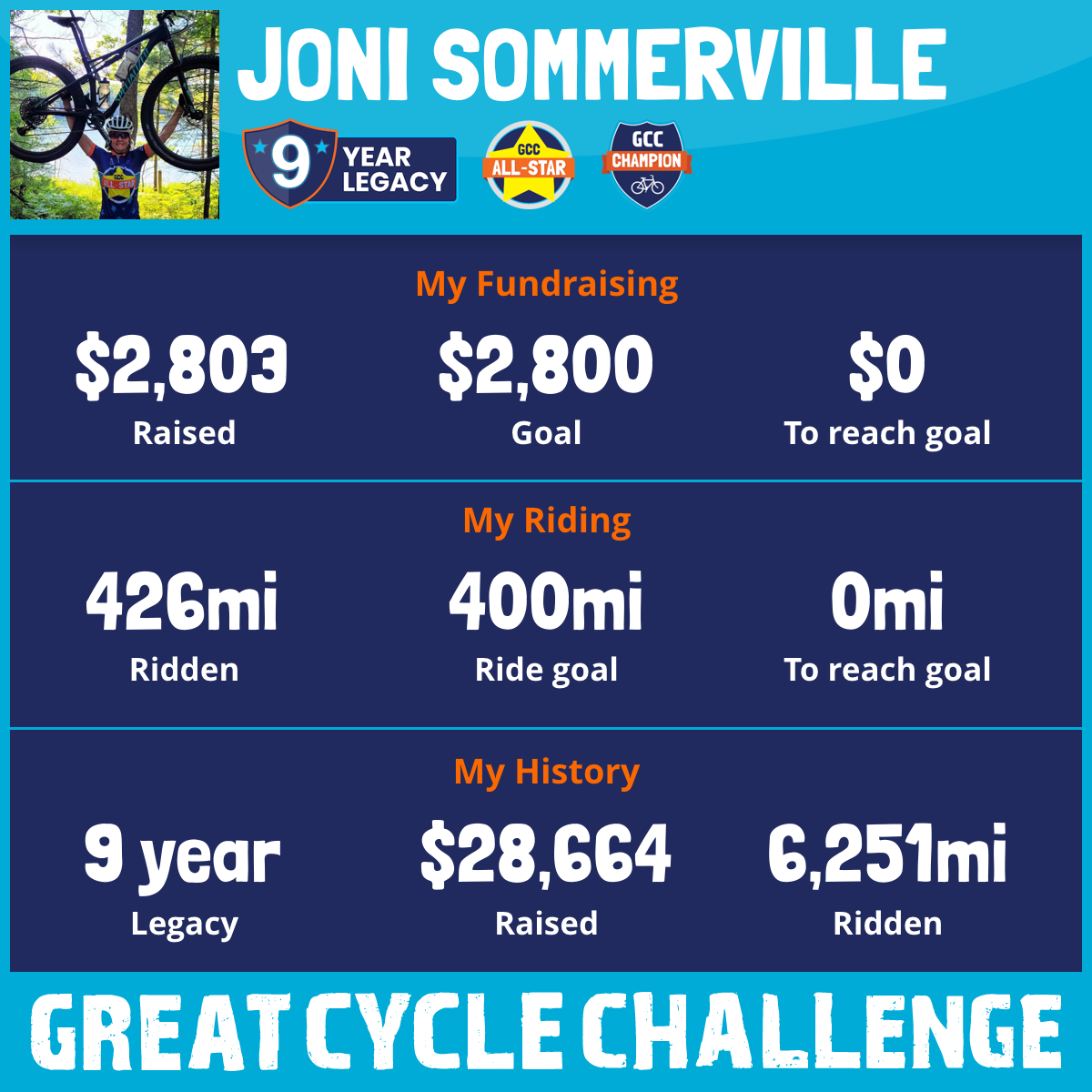 This sept, I am taking part in my 9th Great Cycle Challenge to fight kids' cancer! In the first 8 years I have raised $25816.17!😁 and have ridden over 5825 miles. I have been overwhelmed by the generosity of my family and friends. This experience continues to impact me and has been life changing! Please consider giving for this great cause! Cancer sucks! Please read tribute below.