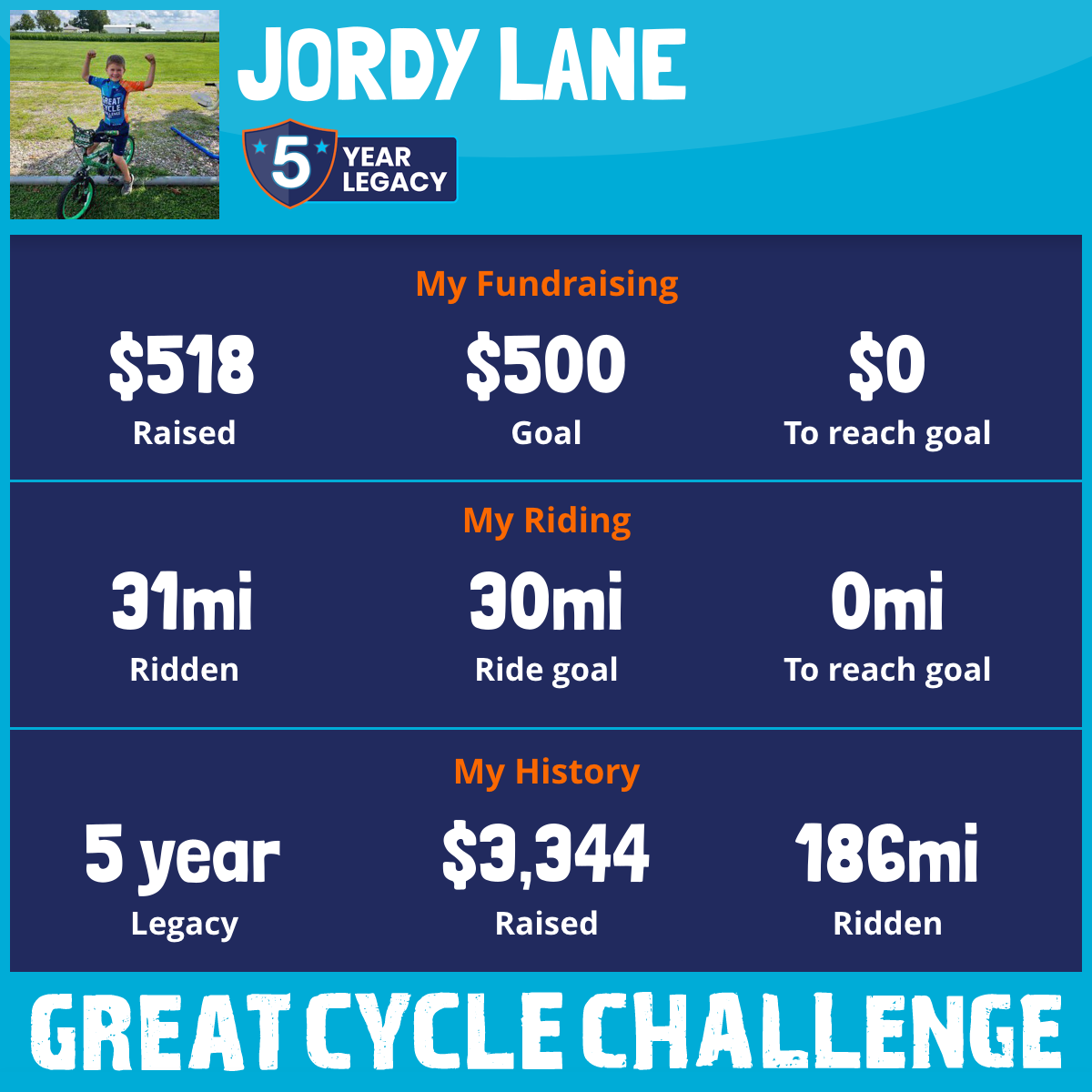 I am riding 30 mi for Kennah. Please sponsor me and support my challenge to fight kids' cancer and save little lives.