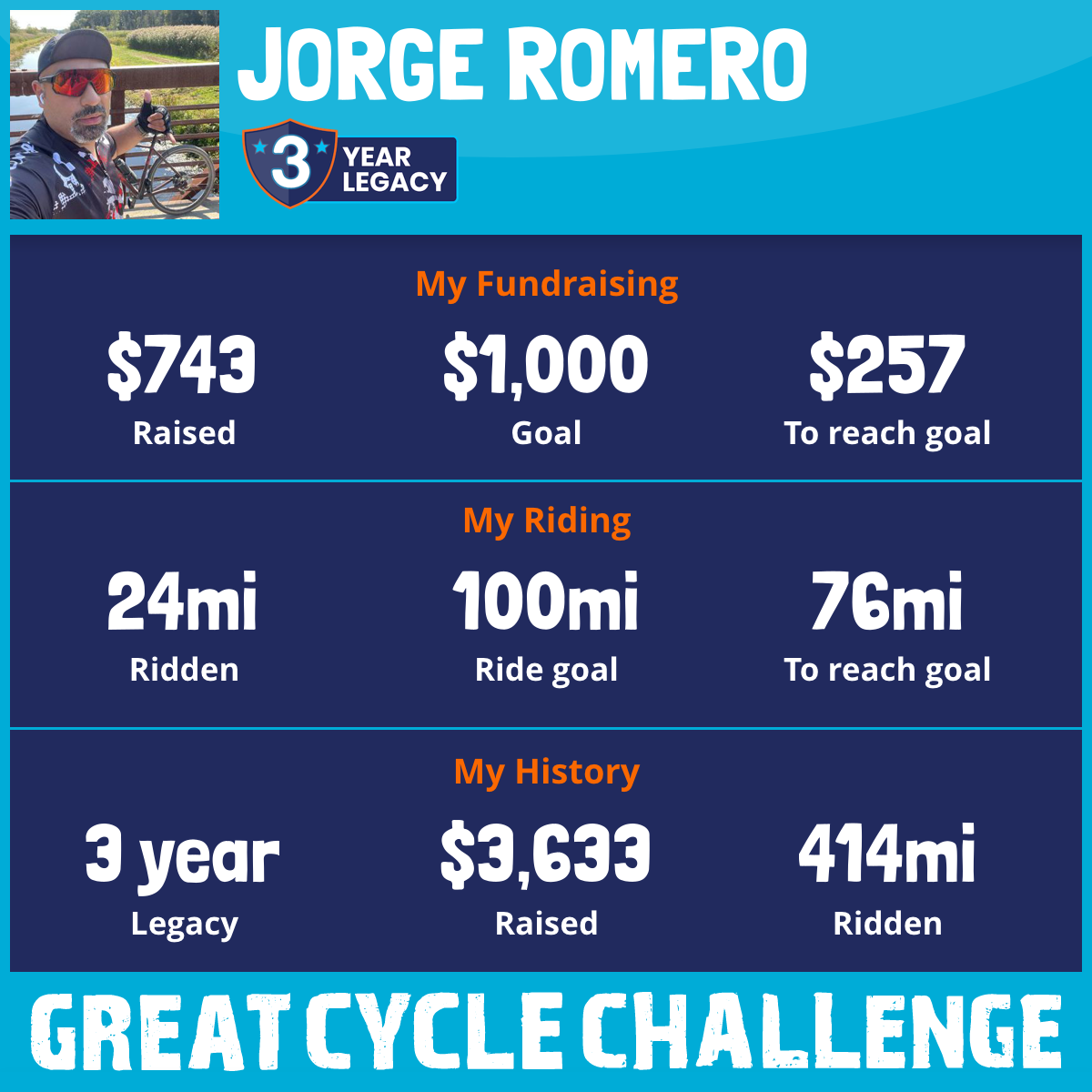 231 mi Ridden$1,912 Raised2023