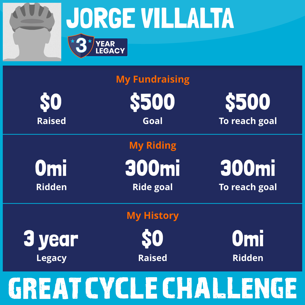 I've raised $0 My goal is $500 Donate Now