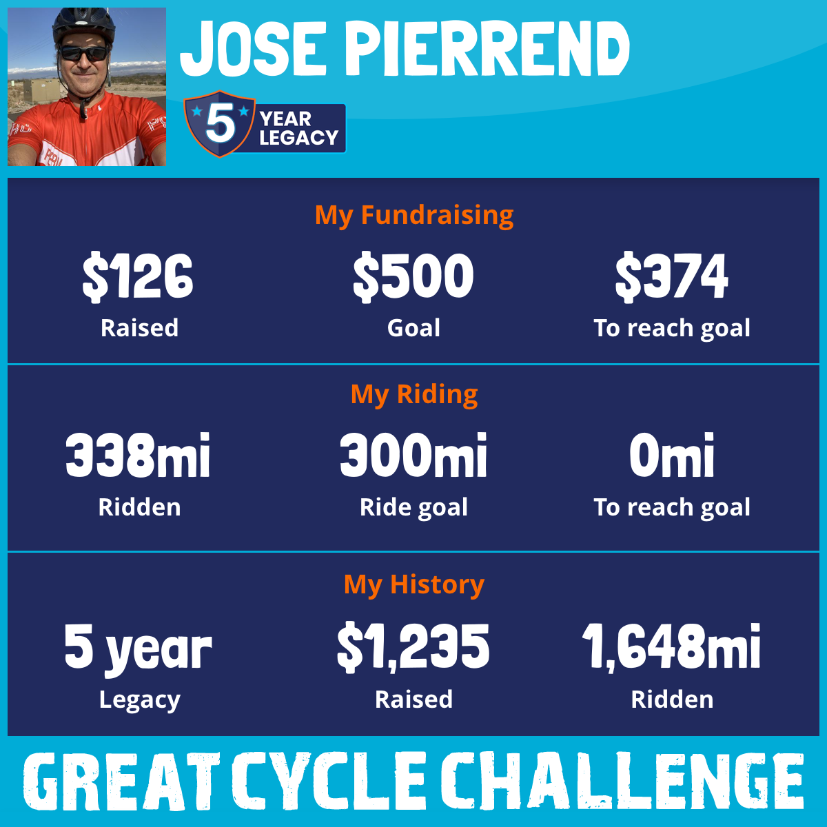 338 mi Ridden$126 Raised2025