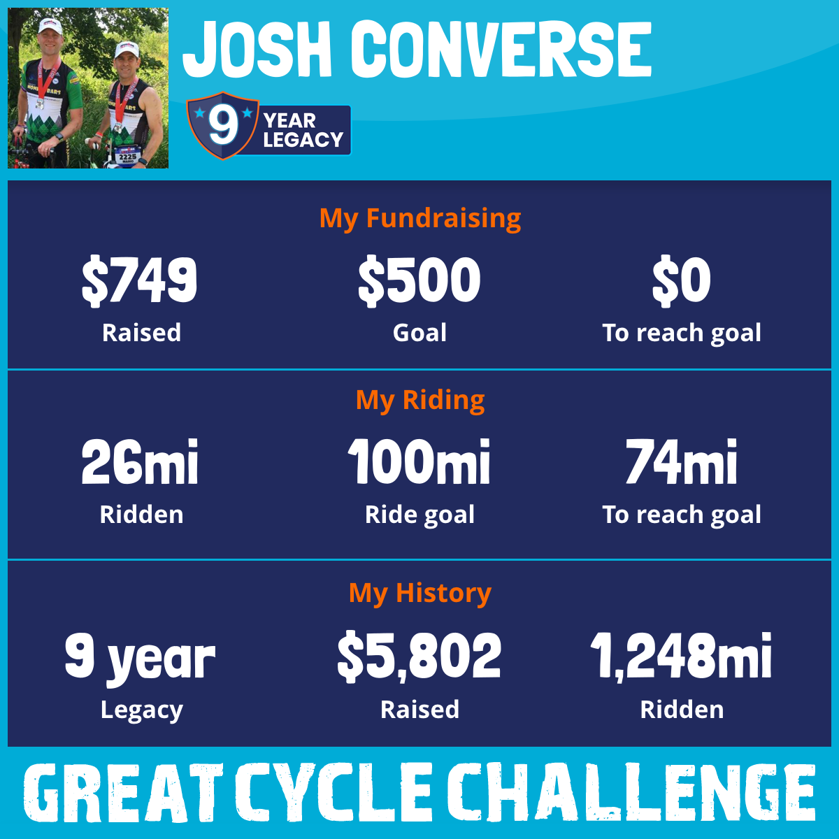 400 mi Ridden$1,004 Raised2017