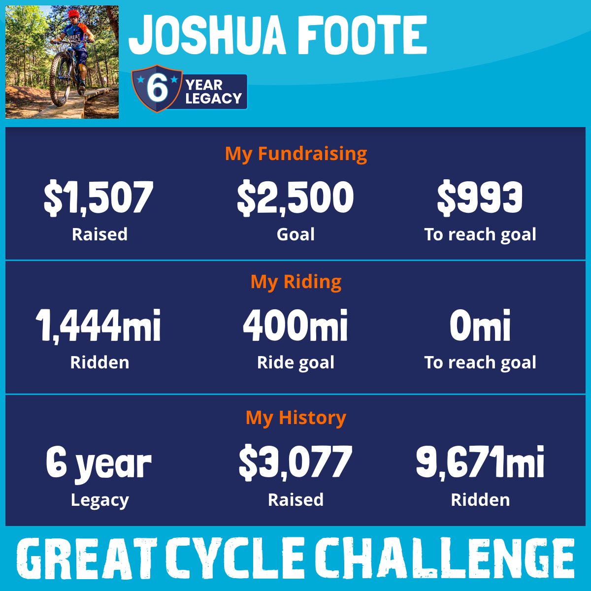1,444 mi Ridden$1,507 Raised2025