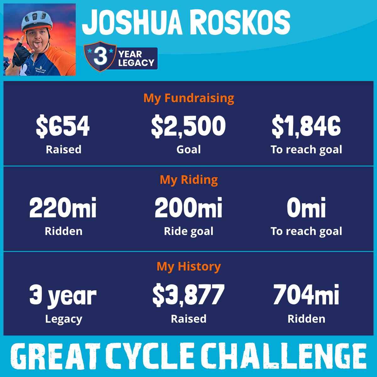 That is why I am raising funds through my challenge. I want to help the Children's Cancer Research Fund create more miracles. Please support my ride and give these kids the brighter futures they deserve.