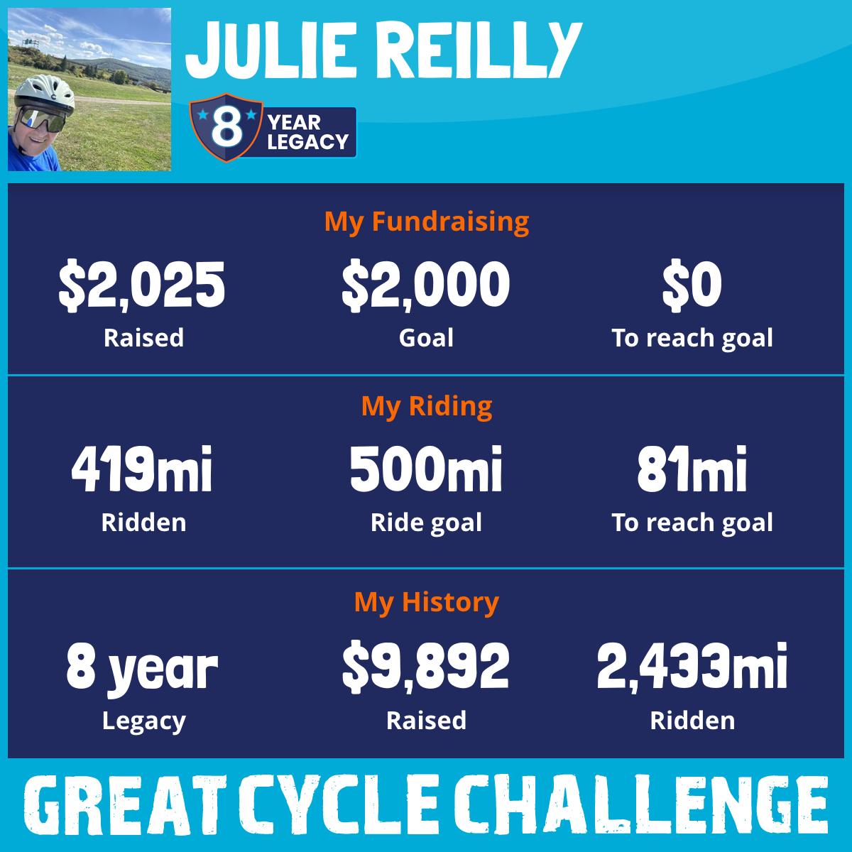 419 mi Ridden$2,025 Raised2025