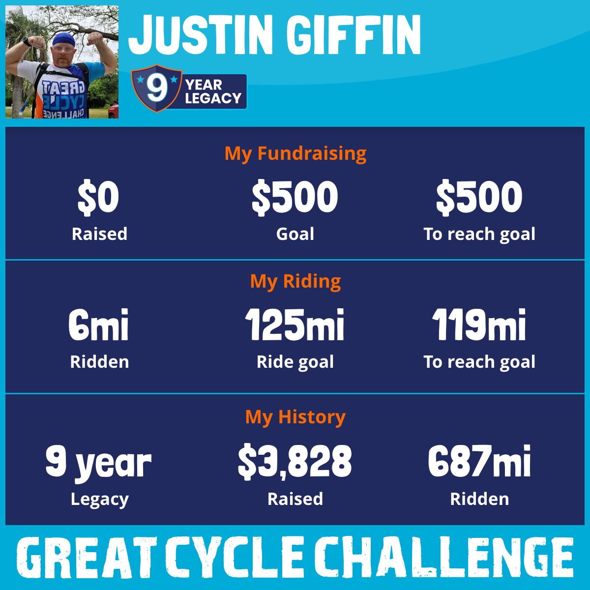 I am riding 125 mi in memory of Roy Giffin. Please sponsor me and support my challenge to fight kids' cancer and save little lives.