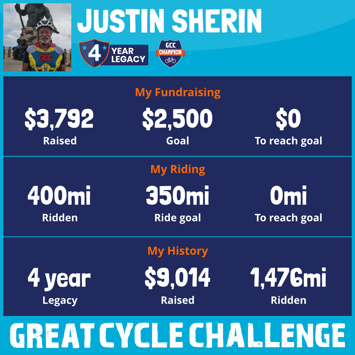 This September I am taking part in my Fourth Great Cycle Challenge to Fight Kids' Cancer! Please donate to support the Fight!!