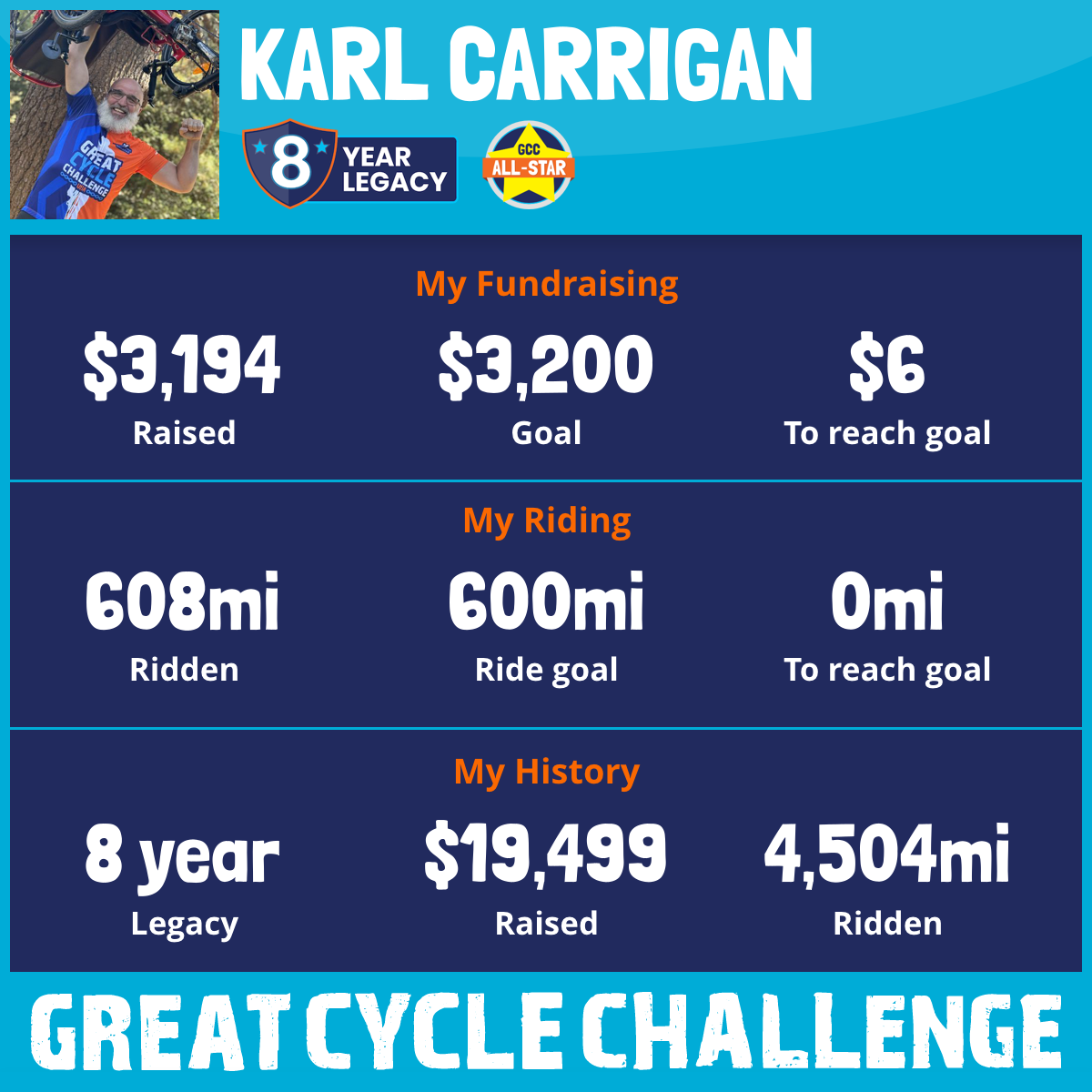 608 mi Ridden$3,996 Raised2025
