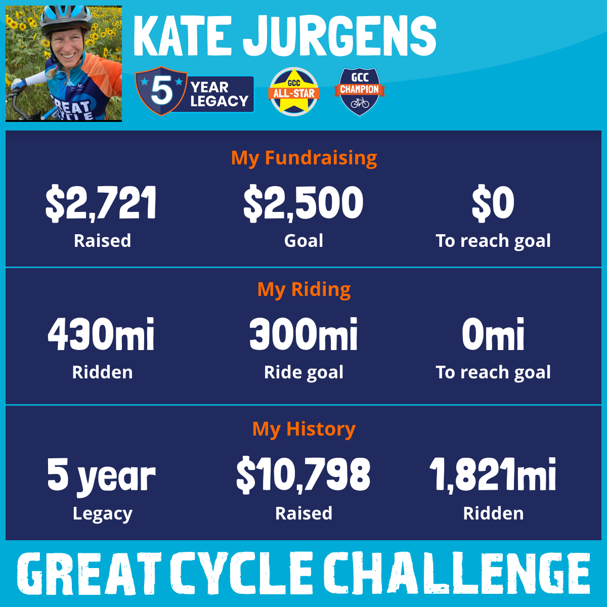 2025 marks 6 years without Cancer. It also celebrates my friend Aubrey, who will be 6 in October and celebrating life post rhabdomyosarcoma caused by Li-Fraumeni syndrome (LFS). Aubrey's mama, Kristine and I were Cancer-Mates in 2019 while she was pregnant with Aubrey, thus cementing a special bond. I'm hoping this September to be able to meet the 300 mile goal while I pedal with Aubrey and Kristine close at heart.