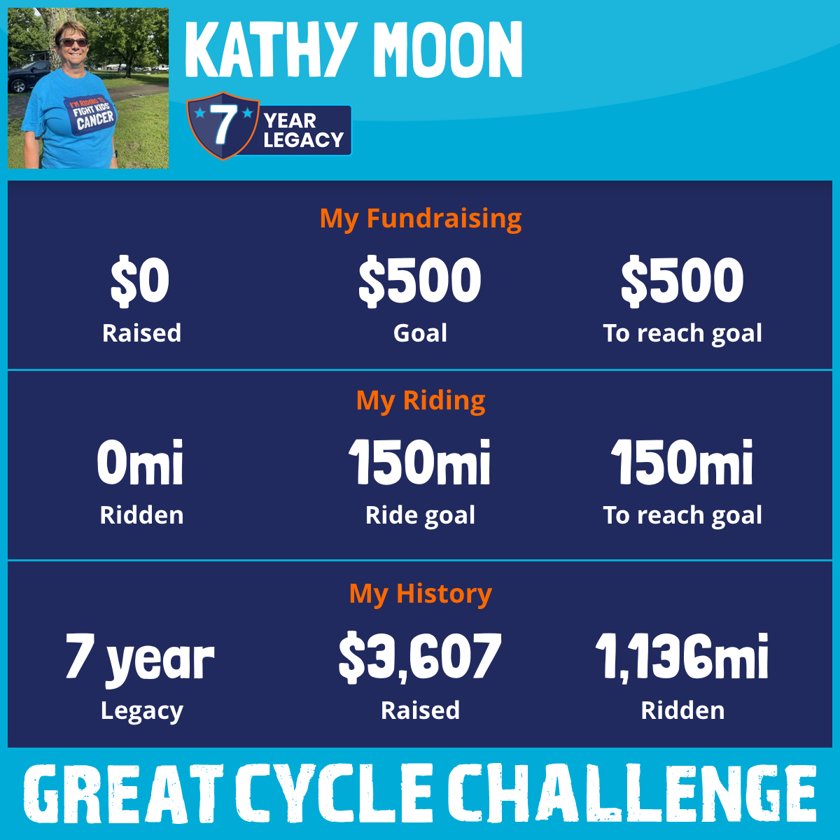 I am riding 150 mi in memory of my daughter, Michelle (My daughter). Please sponsor me and support my challenge to fight kids' cancer and save little lives.