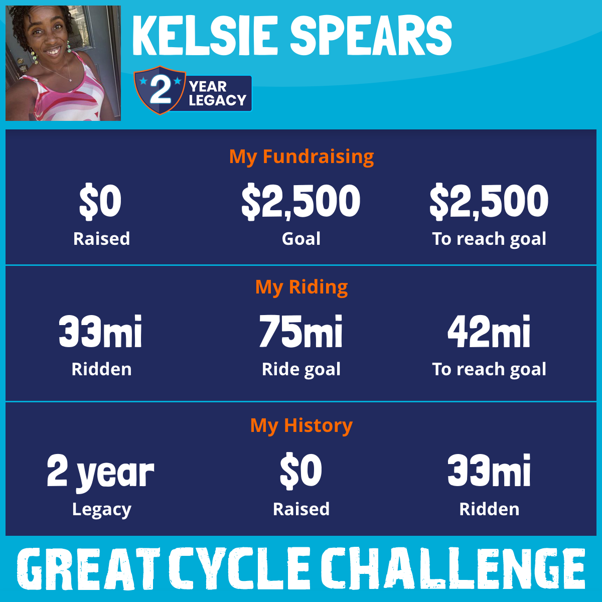 I am riding 75 mi for my loved one, My son’s Godmother. Please sponsor me and support my challenge to fight kids' cancer and save little lives.