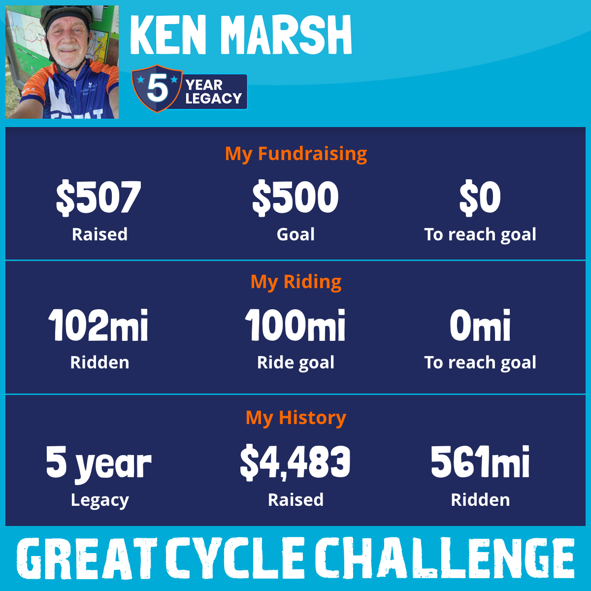 127 mi Ridden$1,486 Raised2023