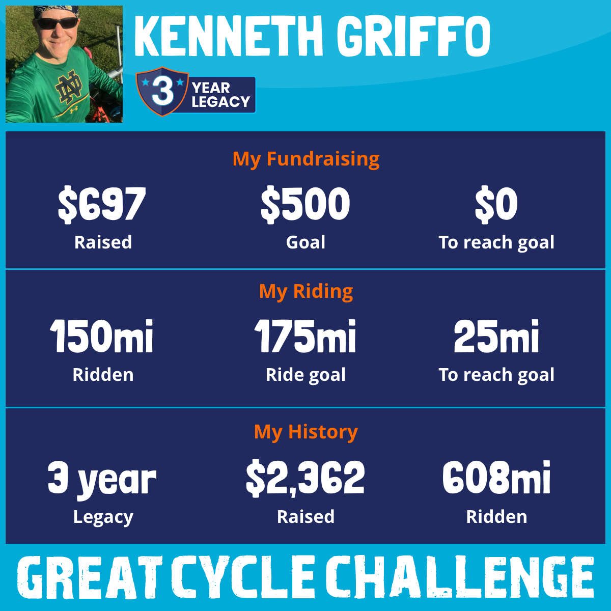 I am riding 100 mi in memory of LG. Please sponsor me and support my challenge to fight kids' cancer and save little lives.