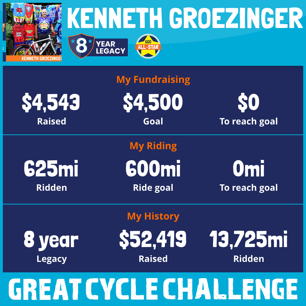 I am participating in my 8th Great Cycle Challenge USA to fight kids' cancer this September. I ride all year for the cause.