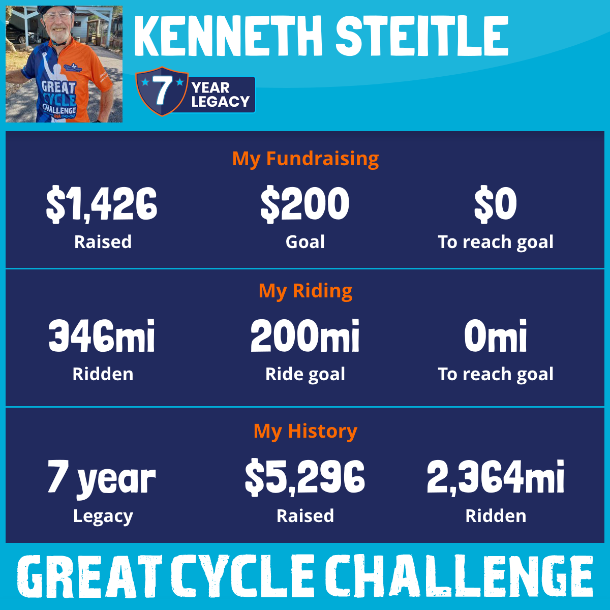 346 mi Ridden$1,426 Raised2025