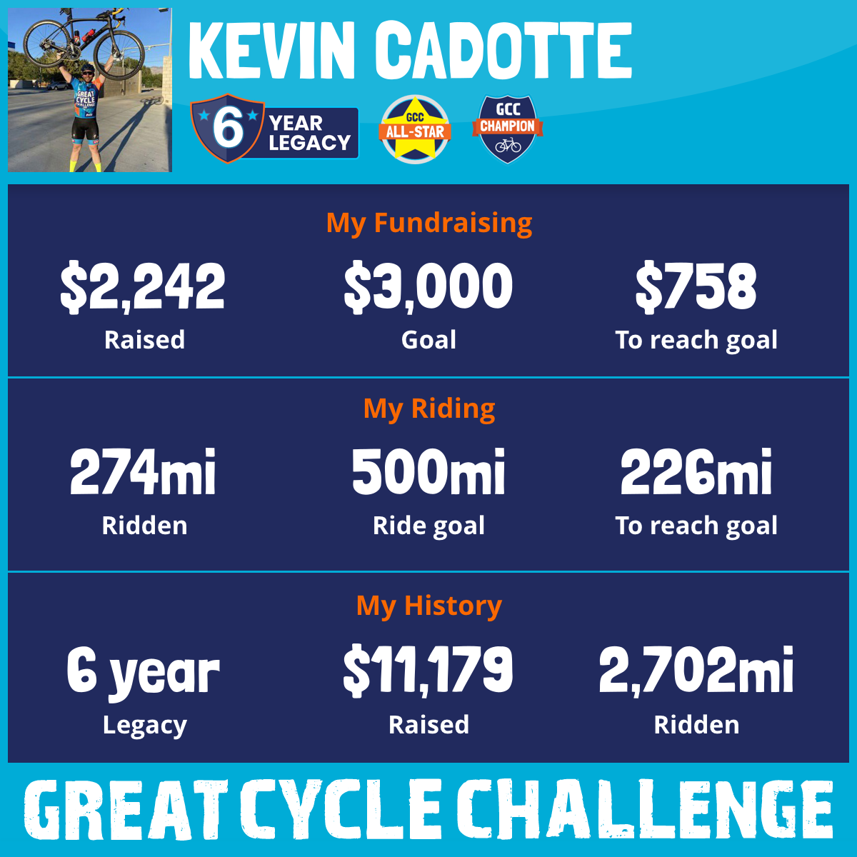 This September, I am taking part in the Great Cycle Challenge to fight kids' cancer! (I will be riding my bike 500 miles and climbing 50,000 vertical feet) Right now, cancer is the biggest killer of children from disease in the United States.