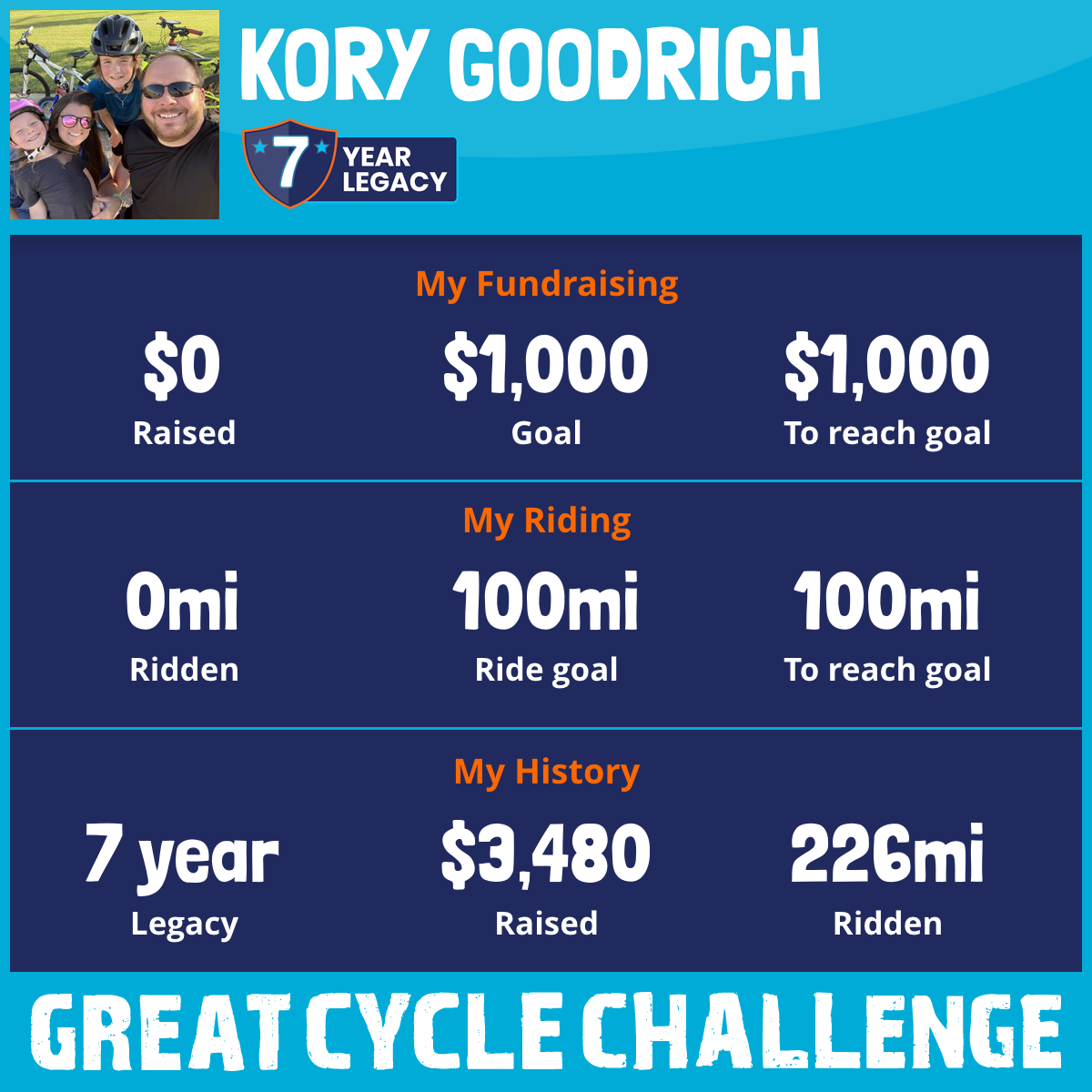 100 mi Ridden$1,284 Raised2020