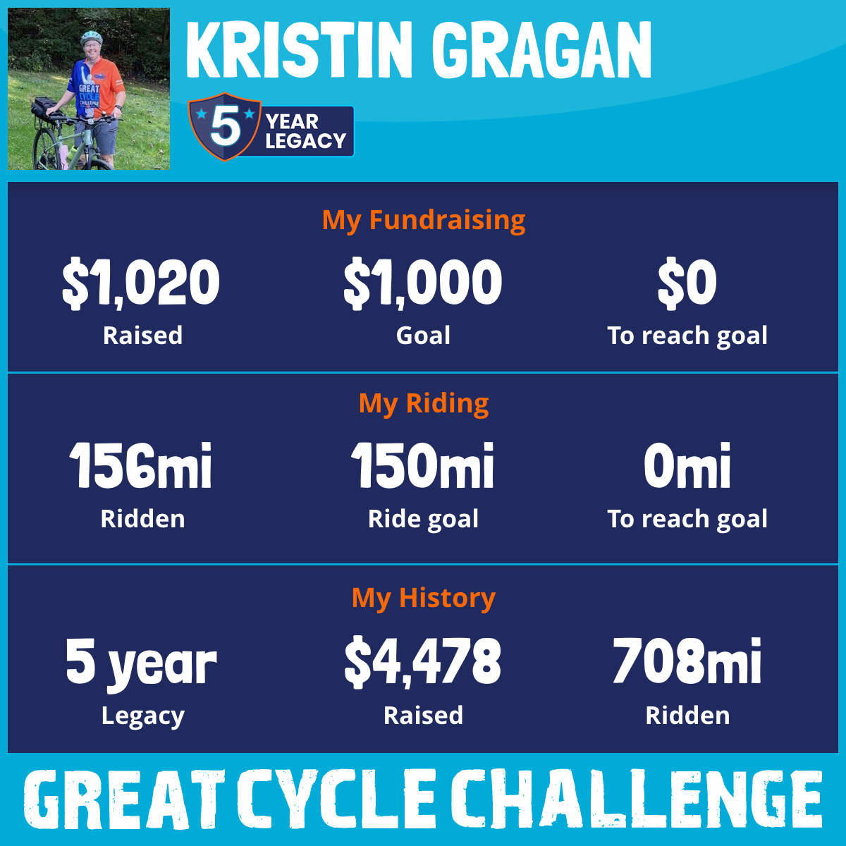 156 mi Ridden$1,020 Raised2025