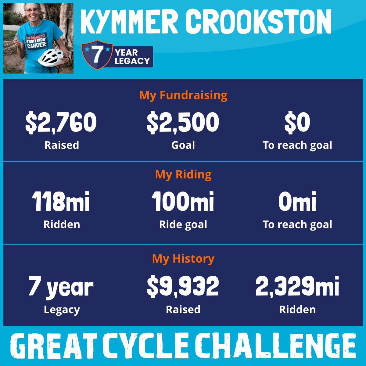 I am riding 100 mi for Every child. Please sponsor me and support my challenge to fight kids' cancer and save little lives.